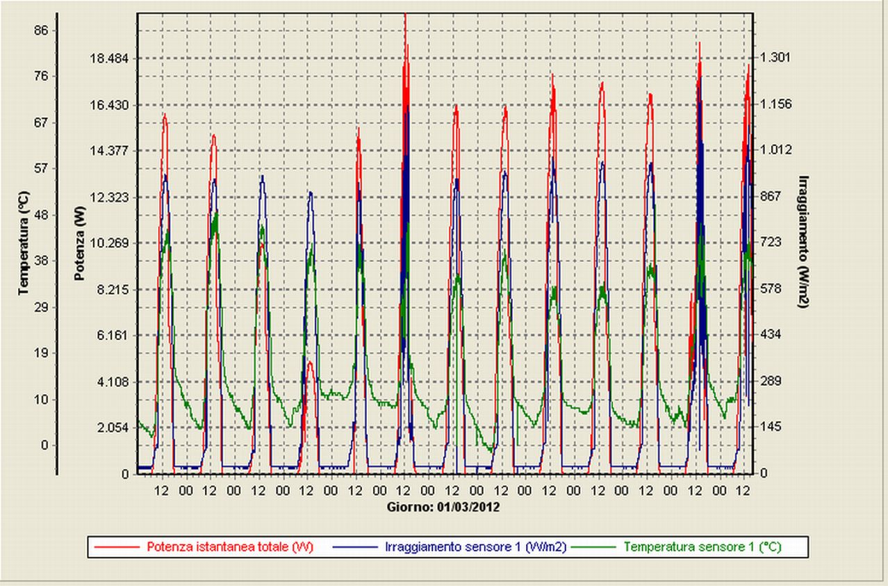 Potenza, irragg., temp pannelli potenza, irragg., temp pannelli