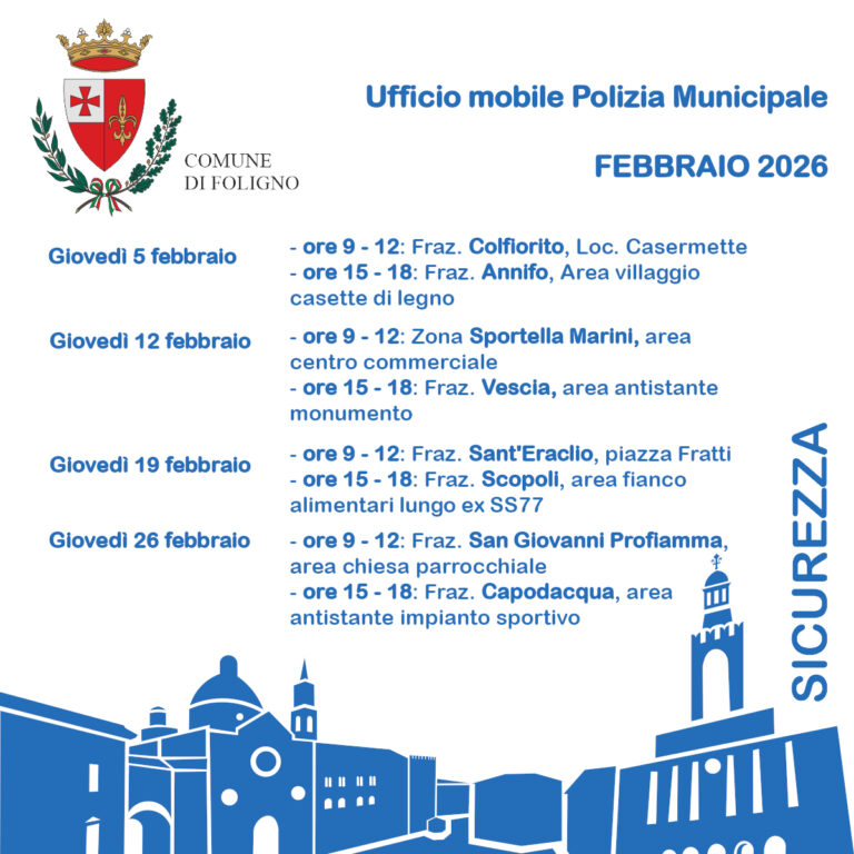 Nuovi orari per il mese di Febbraio dell'Ufficio mobile di polizia municipale