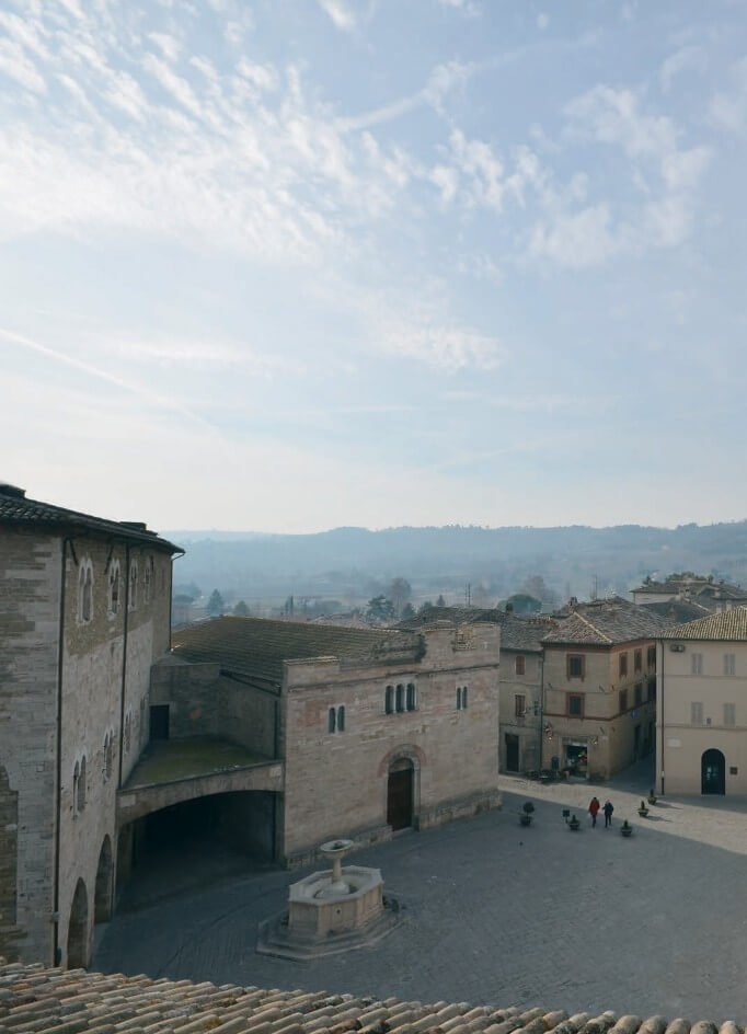 Bevagna, anticamente chiamata Mefana dagli etruschi e successivamente Mevania dai romani, è una cittadina situata sulla consolare via Flaminia. La città è circondata da spesse mura e torri, la sua architettura conserva ancora oggi alcuni segni tipicamente romani. Al suo interno, l’aspetto predominante è quello di una città medievale, dove è ancora viva la tradizione artigiana con le sue botteghe che si aprono sulle caratteristiche viuzze e soprattutto la splendida piazza Silvestri, che concentra in sé i principali monumenti religiosi. Qui si trovano il Palazzo dei Consoli sec. XIII, le Chiese romaniche di S. Silvestro e di S. Michele Arcangelo sec. XII. Il Palazzo dei Consoli inoltre ospita il Teatro Torti, risalente all’Ottocento. Da non perdere anche il Tempio romano risalente al II sec. d.C., a pochi passi dal Foro.