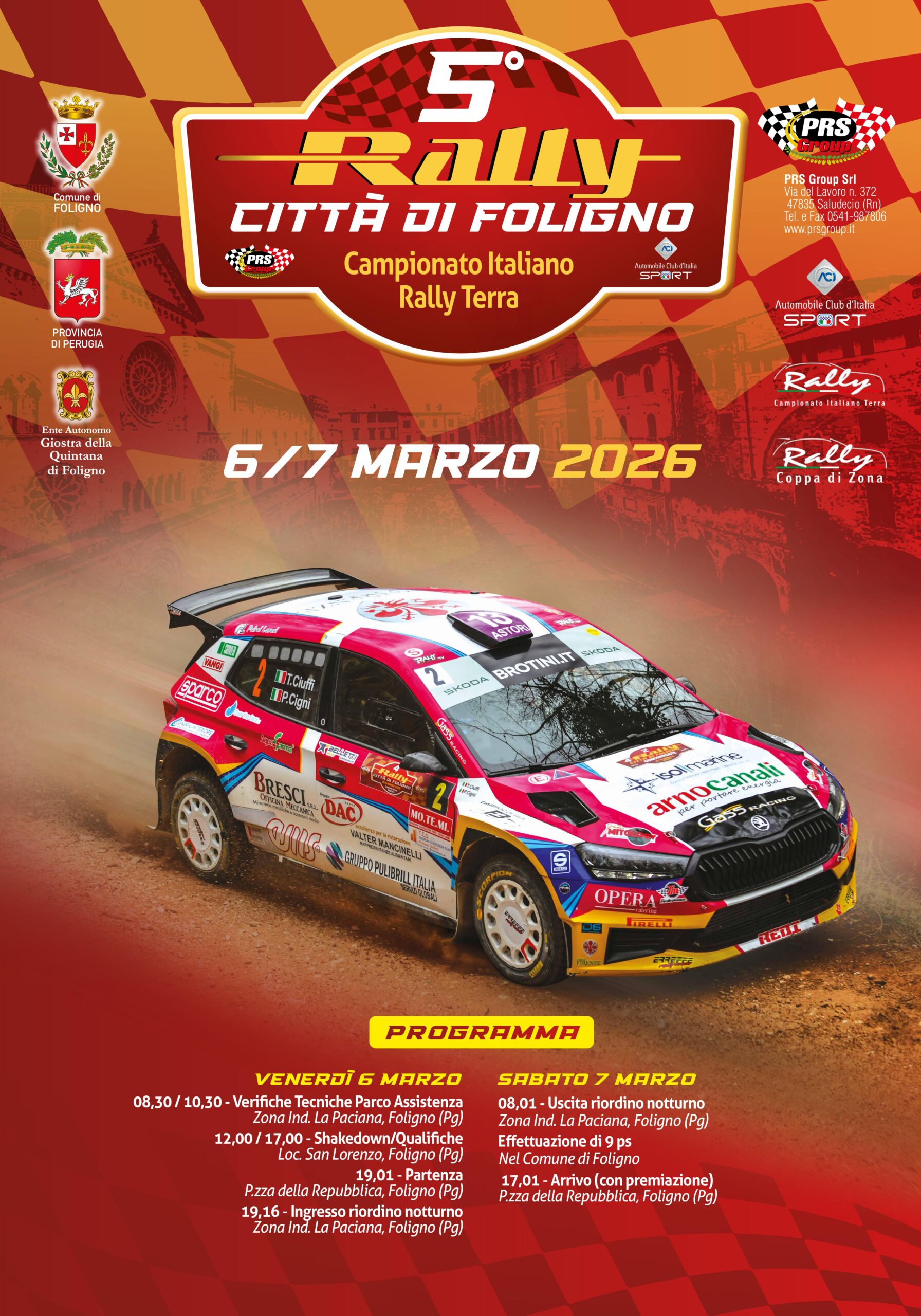 Parte da Foligno sabato 7 marzo il 5° Rally Città di Foligno che rappresenta l’avvio del Campionato Italiano Rally Terra.