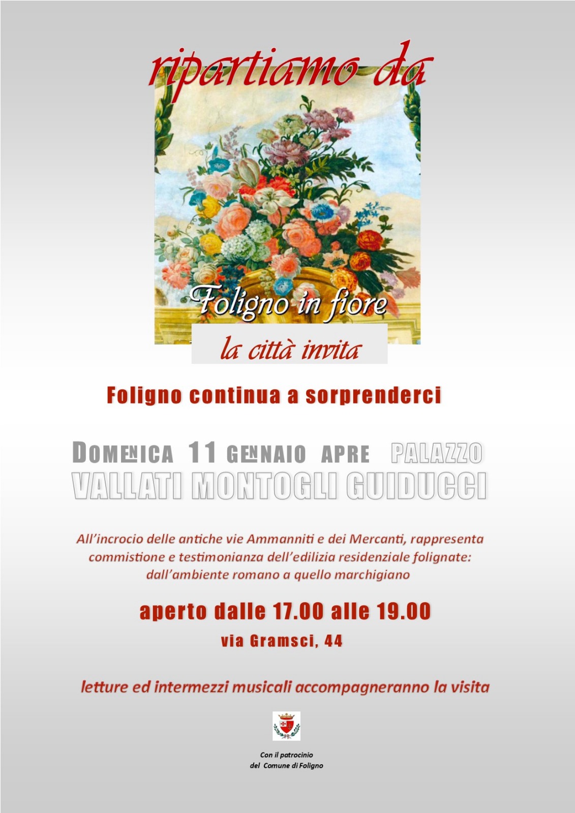 Evento “Ripartiamo da Foligno in fiore”: visite, letture e intermezzi musicali a Palazzo Vallati Montogli Guiducci il 11 gennaio, ore 17‑19.