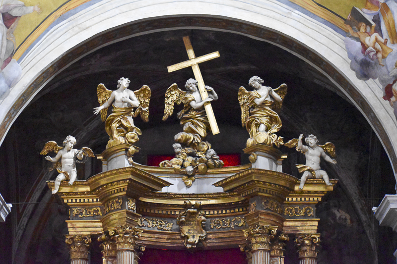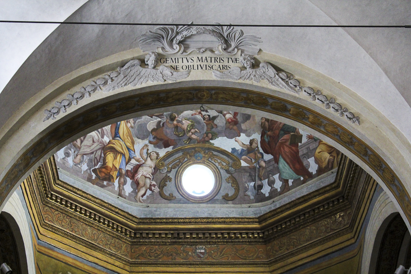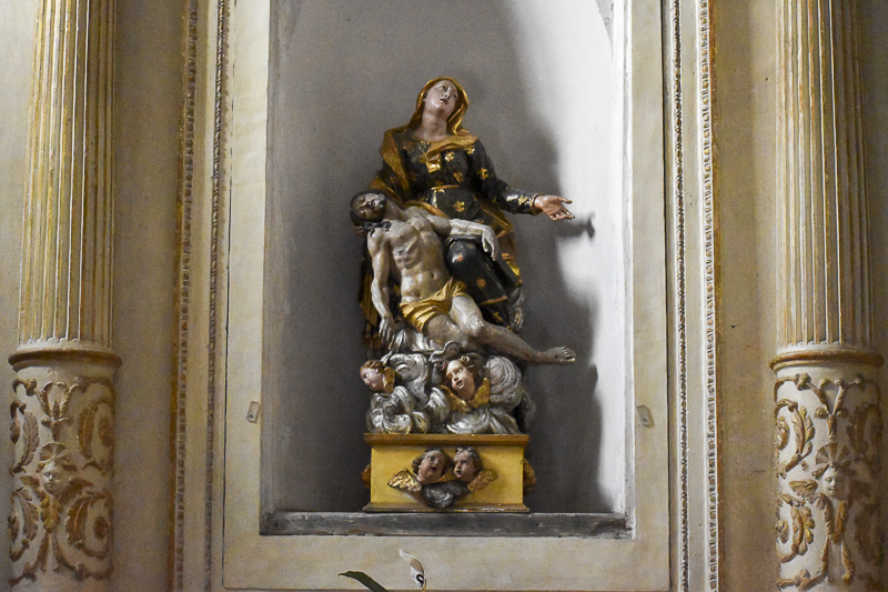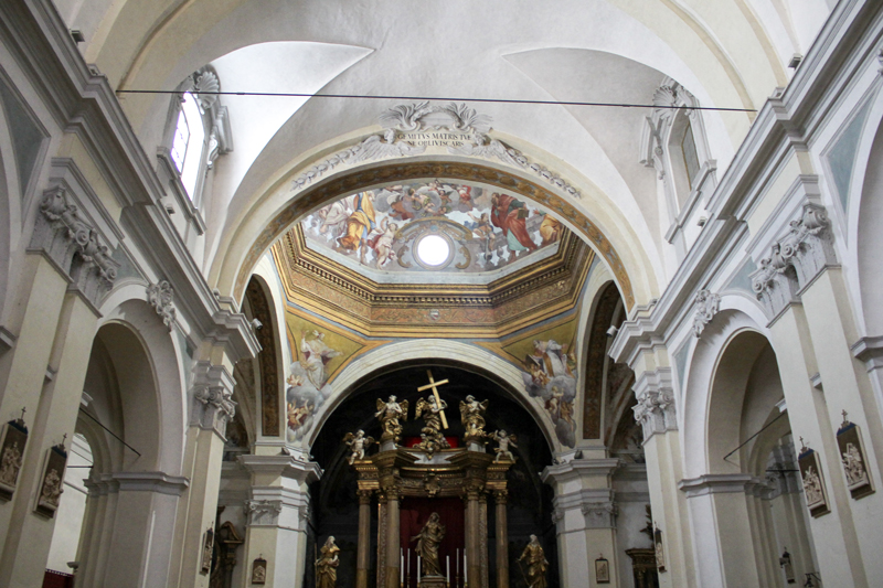 Sull’omonima piazza sorge questo edificio religioso di cui si ha notizia dal 1210. Nel 1273 da ospitaliera diviene conventuale dell’ordine dei Servi di Maria. La facciata così come la vediamo a fasce bianche e rosa risale al Quattrocento, così come la cupola (affrescata più tardi da Giuseppe Nicola Nasini), mentre l’interno a tre navate è stato risistemato nel Settecento. Del 1605 è la parte superiore del campanile. Oltre al coro affrescato e all’organo (1857), la chiesa presenta numerose pitture che adornano gli altari lungo le pareti delle navate, mentre l’altare maggiore è dominato da un’imponente struttura lignea decorata in bianco e oro con colonne e statue tra le quali un San Giacomo maggiore e un San Giacomo minore che posano ai lati della Madonna addolorata. Anche l’annesso convento è appartenuto per secoli all’ordine dei Servi di Maria. Il chiostro, a due livelli completati in epoche diverse, presentava al centro una statua di San Filippo Benizi del 1660, attualmente collocata nel cimitero civico. Audio