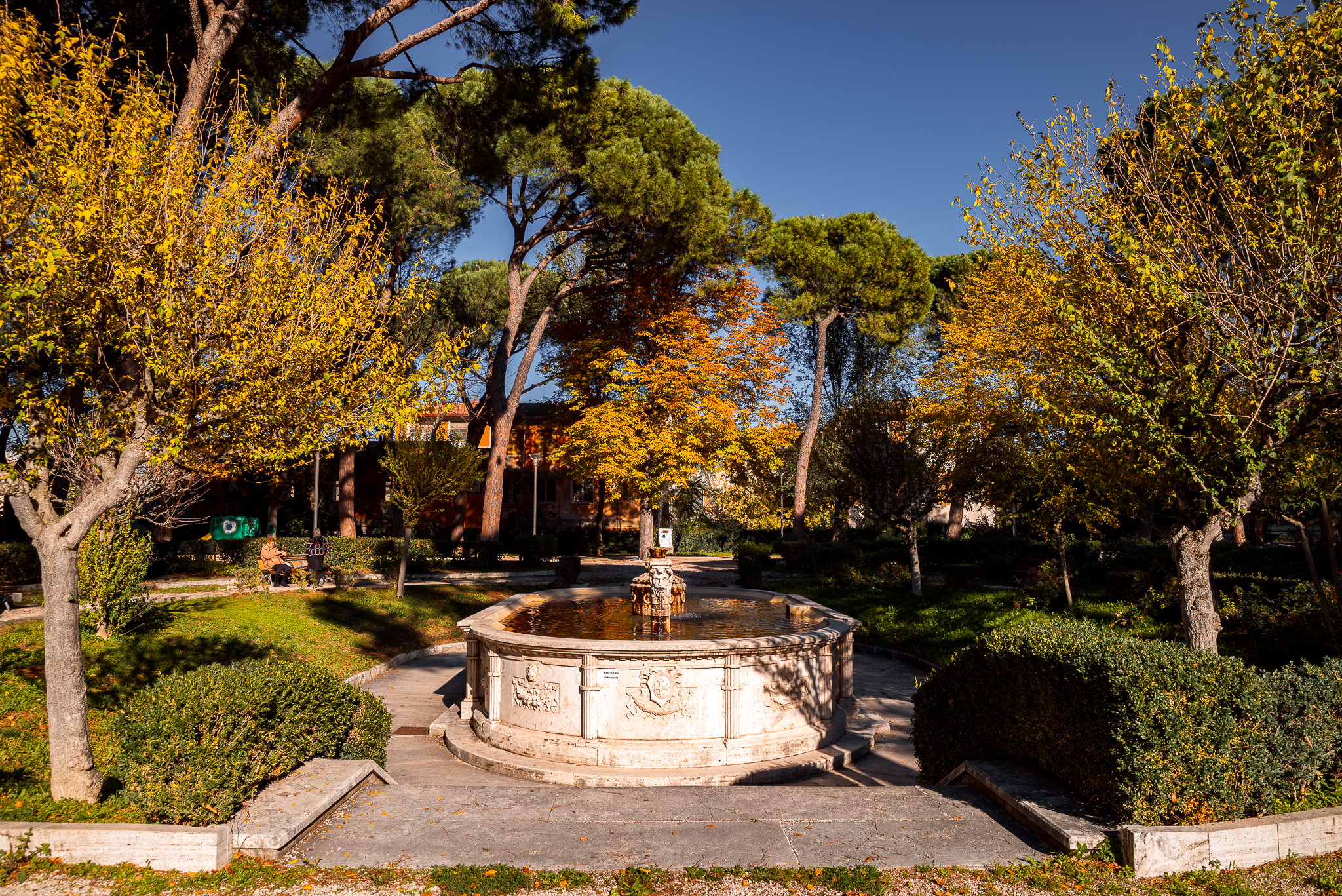 Nel 1933 Nicola Brunelli firmò il progetto di una fontana monumentale da collocare in Piazza della Repubblica, un tempo Piazza Vittorio Emanuele II. I lavori furono eseguiti dagli scalpellini Stramaccia e C. e dal decoratore E. Federici. La fontana, di forma ellittica con al centro la maschera di un tritone che versa acqua dalla bocca, presenta anche due ugelli laterali che rappresentano i timoni di una nave. La collocazione originaria creava disagi ai cittadini, in quanto l’acqua, spostata dal vento che ancora oggi soffia nella piazza, rendeva pericoloso camminare in inverno e bagnava i passanti. Per questi motivi, qualche anno dopo, l’amministrazione comunale decise di collocare la fontana nel Parco dei Canapé.