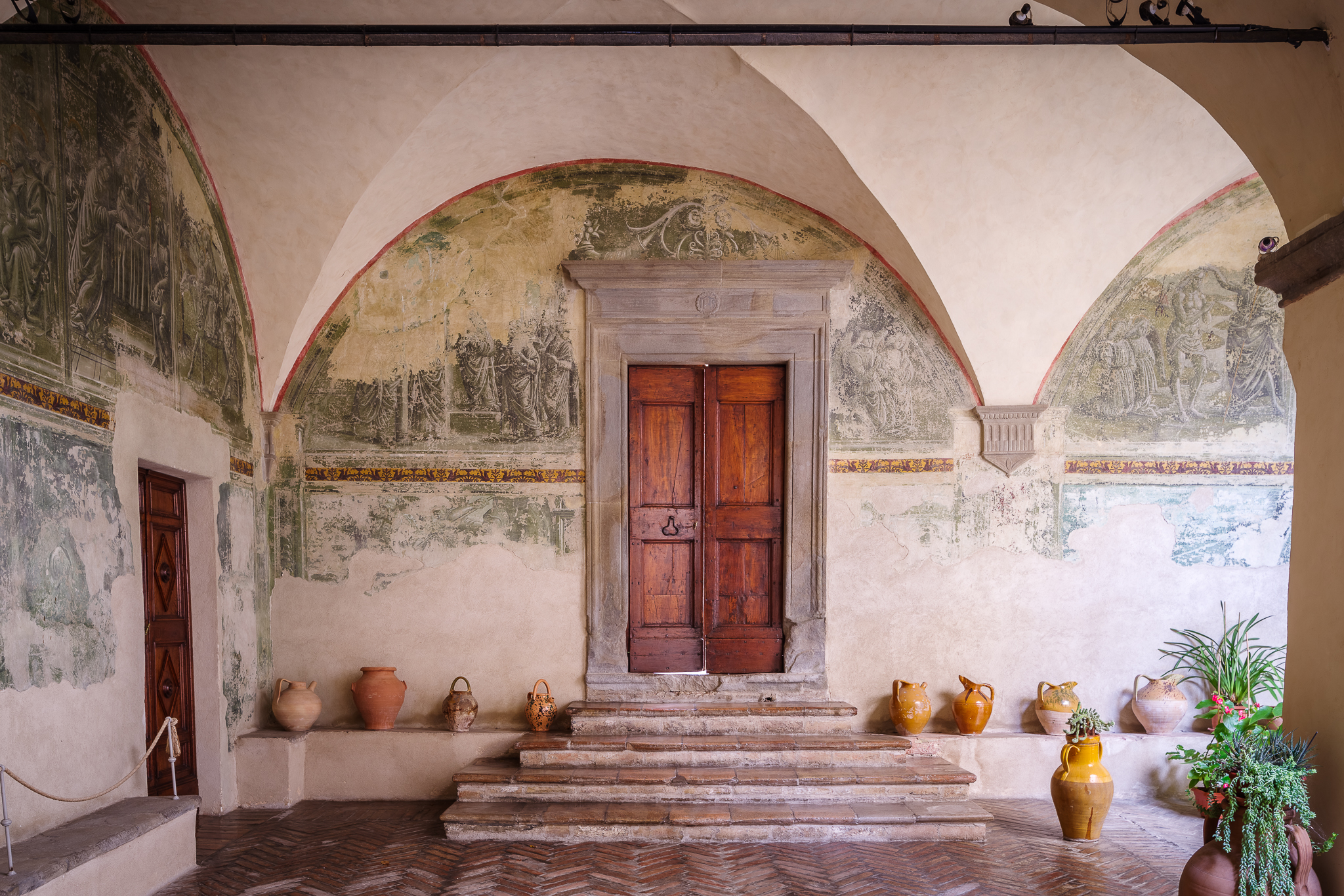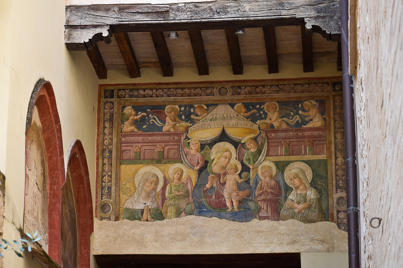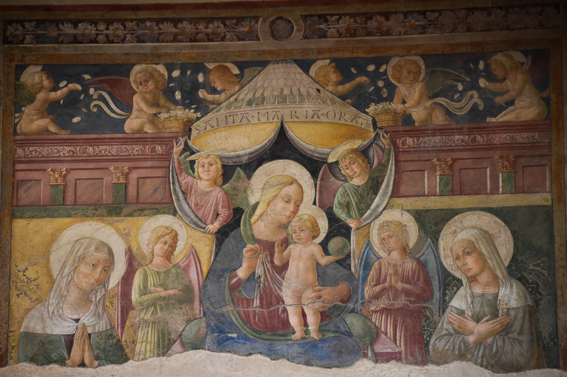 Delle cinque strutture che per secoli hanno dato il nome alla Via dei Monasteri, il monastero di Sant’Anna o delle Contesse è l’unico rimasto. Fondato da Angelina dei Conti di Montegiove e di Marsciano risulta già attivo nel 1388. Notevoli i due chiostri interamente affrescati. All’interno della chiesa si può ammirare l’affresco Vergine in trono col Bambino tra Sant’Anna, la beata Angelina e angeli di Pierantonio Mezzastris. Sulle pareti a fianco sono, a destra, San Pietro d’Alcantara, a sinistra, Madonna col Bambino (frammentaria) e San Diego d’Alcalà, opere di Ippolito Lemmi da Coceto. La chiesa conserva anche due statue lignee policrome risalenti al secolo XVI, l’una raffigurante la Madonna, l’altra Sant’Anna. È collegata al monastero una struttura ricettiva ricavata dalle case quattrocentesche di pittori come Niccolò di Liberatore detto l’Alunno che conserva interessanti elementi architettonici e decorativi. Fino al 1798 il monastero ospitò la famosa Madonna di Foligno, opera di Raffaello.