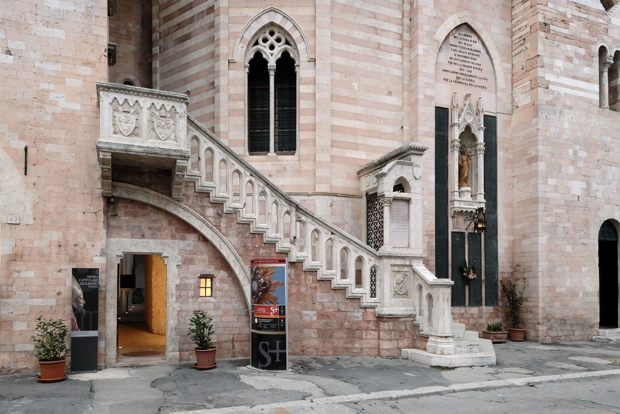 The Museo Capitolare e Diocesano di Foligno, with its bookshop and ticket office on the ground floor, extends to the next two floors via an external staircase.