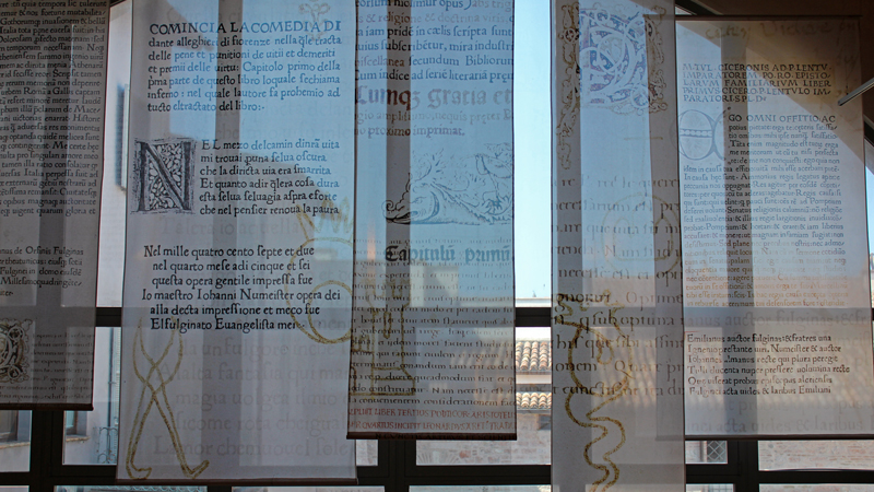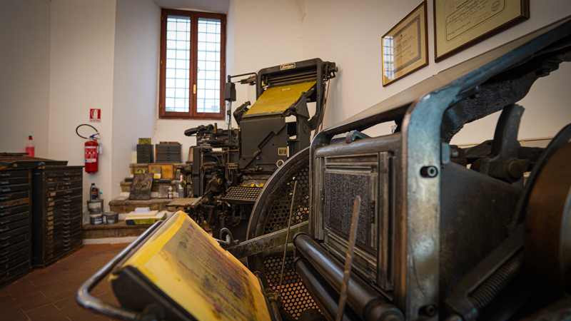 Collocato nell’antico palazzo Orfini raccoglie testimonianze sulla produzione della carta e sull’editoria folignate dal XV secolo ad oggi. Il palazzo tardo quattrocentesco era l’antica dimora della famiglia Orfini, ricchi zecchieri pontifici, e sede della tipografia. Si accede al museo tramite un portale sul cui stipite campeggia il motto “Laborandum ut quiescas”. Qui operò Johannes Numeister, allievo di Gutenberg e qui venne stampata, nel 1472, la prima copia della Divina Commedia di Dante Alighieri. Il museo si articola in quattro sezioni: la Sala degli incunaboli ove sono esposte filigrane, matrici ed edizioni prototipografiche, la Sala del civil consesso con epitalami, scritti per monacazioni e periodici pubblicati a Foligno, la Sala dei lunari dove si espongono almanacchi e lunari tra cui il celebre Barbanera e la Sala dei tipografi attivi a Foligno tra Cinque e Ottocento.