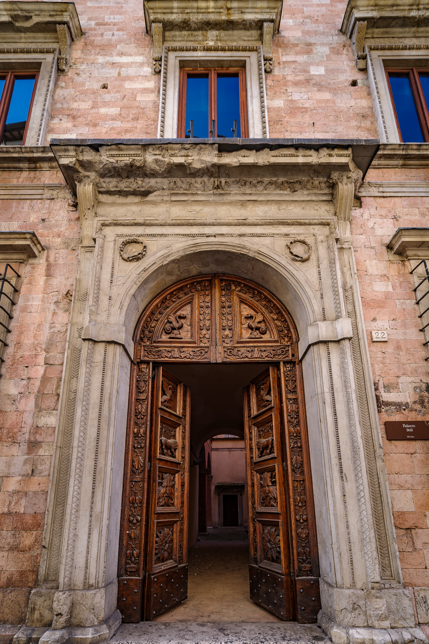 Fatto costruire da Francesco Nuti di Assisi nel 1516 a seguito del matrimonio con la folignate Roderica Varini, fu acquistato dalla famiglia Deli agli inizi dell’Ottocento. Presenta una facciata tipicamente rinascimentale in pietra rosa del monte Subasio che si appoggia alla preesistente torre medievale. Bello il cortile ove si affaccia il portico in mattoni rossi con al centro un pozzo finemente decorato. Il grande portone intagliato che apre su via Gramsci, così come i due minori, bugnati, al primo piano, presentano lo stemma dei Nuti (un drago su un monte a tre cime) e quello dei Varini (due gigli su un monte a sei cime). Il primo piano, sede della sezione Ragazzi della Biblioteca comunale, presenta molti elementi originali:  dentro una nicchia della fine del Quattrocento è presente un affresco raffigurante la Madonna di Loreto e nel sottarco San Giovanni e San Feliciano; sulla mostra del monumentale camino nella grande sala che da questo prende il nome, utilizzata per molteplici attività della biblioteca, si legge il motto della famiglia Nuti: “Volenti nil difficile” (niente è difficile a chi vuole; voc. Treccani); una delle sale di lettura è interamente decorata, probabilmente da Francesco Bottazzi, con il Carro di Apollo sulla volta e le quattro Stagioni alle pareti; un’altra sala presenta un prezioso soffitto a formelle di ceramica. Il secondo piano del palazzo è sede della Sezione di Foligno dell’Archivio di Stato di Perugia.