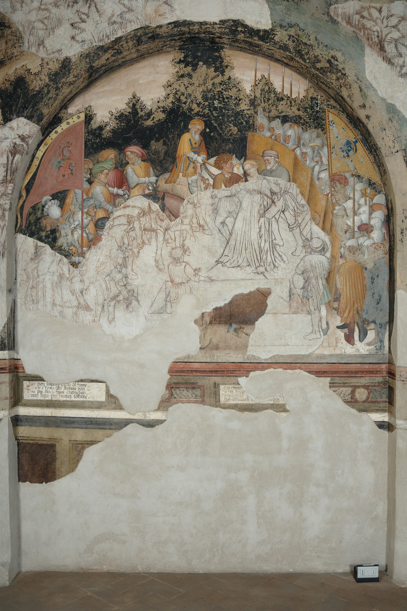 Nei primi anni Duemila, grazie al rinvenimento del settecentesco "Taccuino Coltellini” che riporta la trascrizione di un antico documento del 1411- 1412, è stato possibile individuare gli autori degli affreschi: un gruppo di artisti provenienti dal Nord Italia tra cui il maestro Gentile da Fabriano, formatosi prima a Pavia e poi a Venezia.