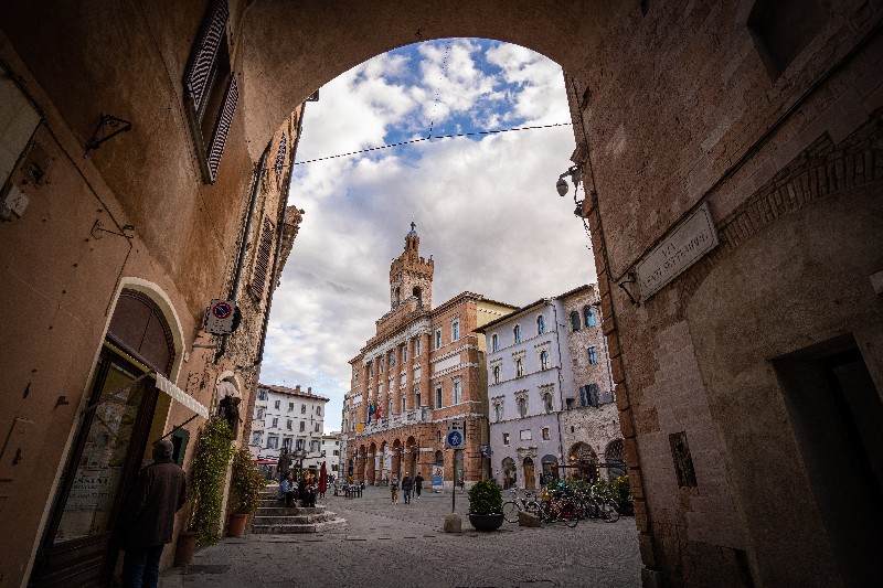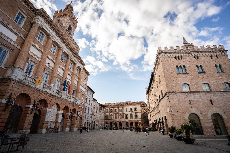 Piazza della Repubblica è il cuore della città da cui si dipartono le principali direttrici che conducono alle porte. Intorno a questa piazza si è sedimentata la vita civile e spirituale della città, con i suoi edifici e spazi pubblici. San Feliciano, martire, venne sepolto vicino alla città di Foligno presso il Fiume Topino, oltre il ponte di Cesare o della Pietra, in un campo destinato all’inumazione dei cadaveri. Intorno alla sua tomba venne eretto un castello, chiamato Castrum Sancti Feliciani, ove poi si è sviluppato l’antico abitato della città. La grandiosa mole del Duomo domina la piazza con la sua cupola del 1500, la facciata minore in stile romanico e il Palazzo delle Canoniche. Il Palazzo Trinci, antica dimora dei signori di Foligno, chiude il lato nord. Si oppone a questo il Palazzo Comunale con la facciata neoclassica, il rinascimentale Palazzo Orfini, che ospita il Museo della Stampa, il Palazzo del Podestà, che presenta tracce di decorazione sulla facciata e i resti di un edificio medievale. Proprio in questa piazza San Francesco d’Assisi iniziò il suo cammino di conversione donando i suoi vestiti e il suo cavallo.