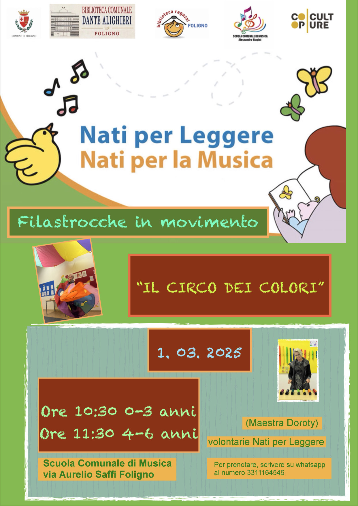Biblioteca dei ragazzi, Sala del camino, Foligno. Ore 10.00. Per info: 0742-330622.