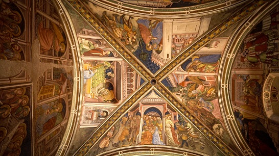 Si prosegue fino alla Sala dei Giganti, affrescata illustri personaggi e imperatori che hanno segnato la storia dell’antica Roma. In cima alla scala, sempre al secondo piano, si trova la Sala di Sisto IV, dal nome del pontefice che nel 1475 fece rifare il soffitto ligneo su cui compare il suo stemma.