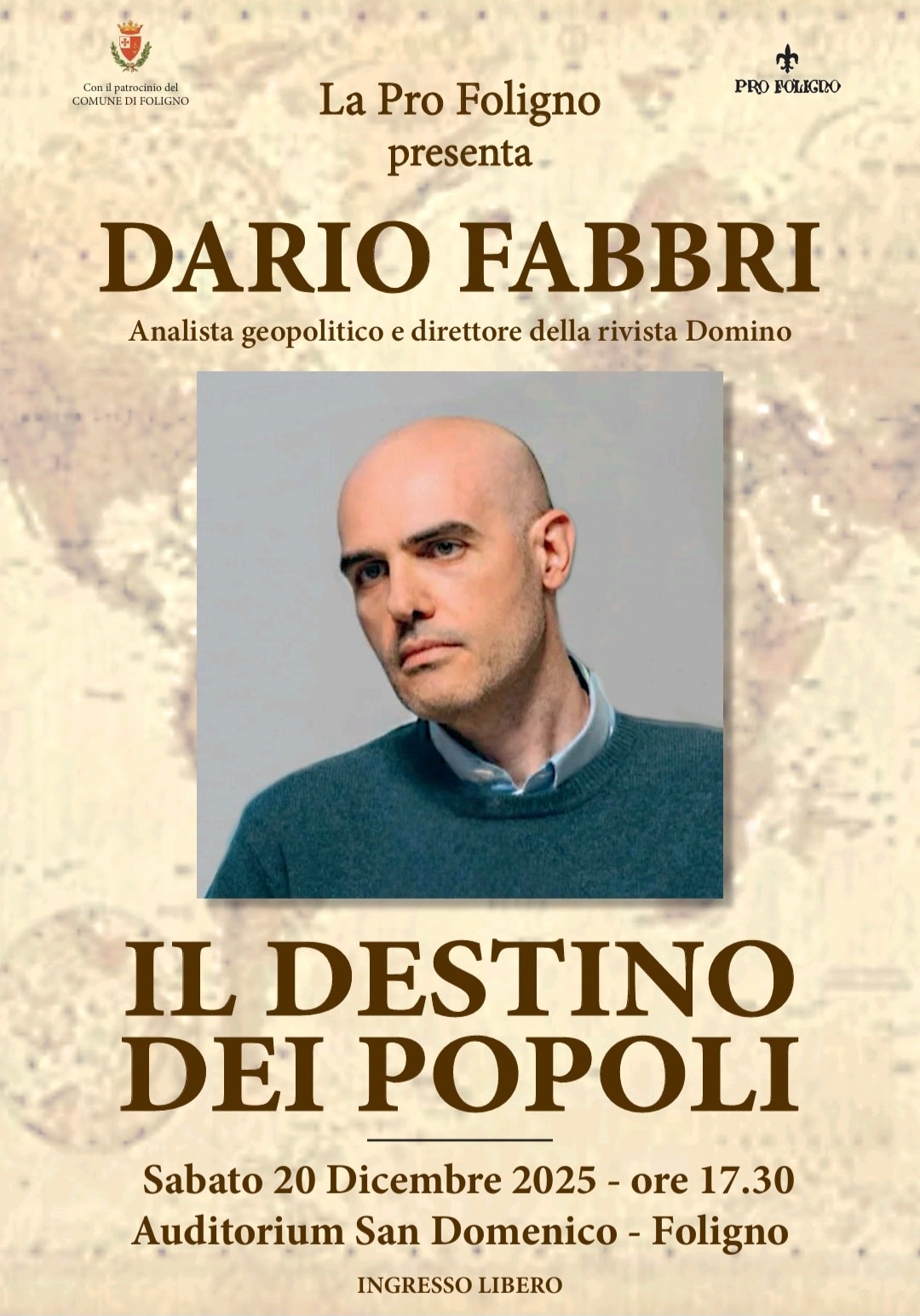 Dario Fabbri, analista geopolitico e direttore della rivista Domino, torna a Foligno con la conferenza "Il destino dei popoli".