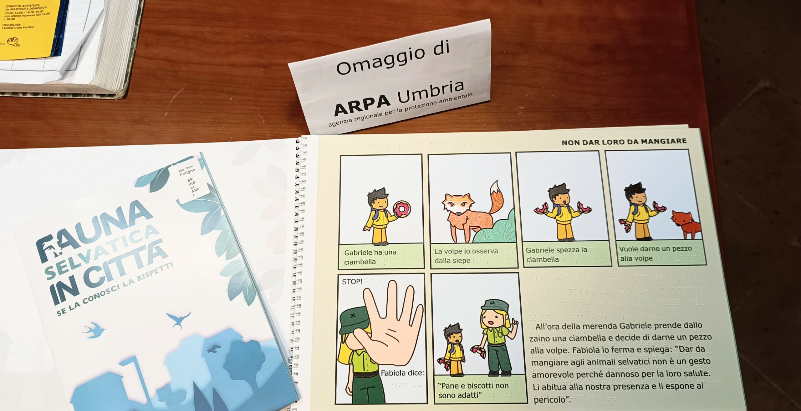 Alla Biblioteca “Dante Alighieri” sono arrivate due copie del fumetto “Fauna selvatica in città: se la conosci la rispetti”, realizzato da ARPA Umbria (Agenzia Regionale per la Protezione Ambientale dell’Umbria), dedicato alla fauna selvatica in ambiente urbano e progettato per essere fruibile anche da persone cieche e ipovedenti.