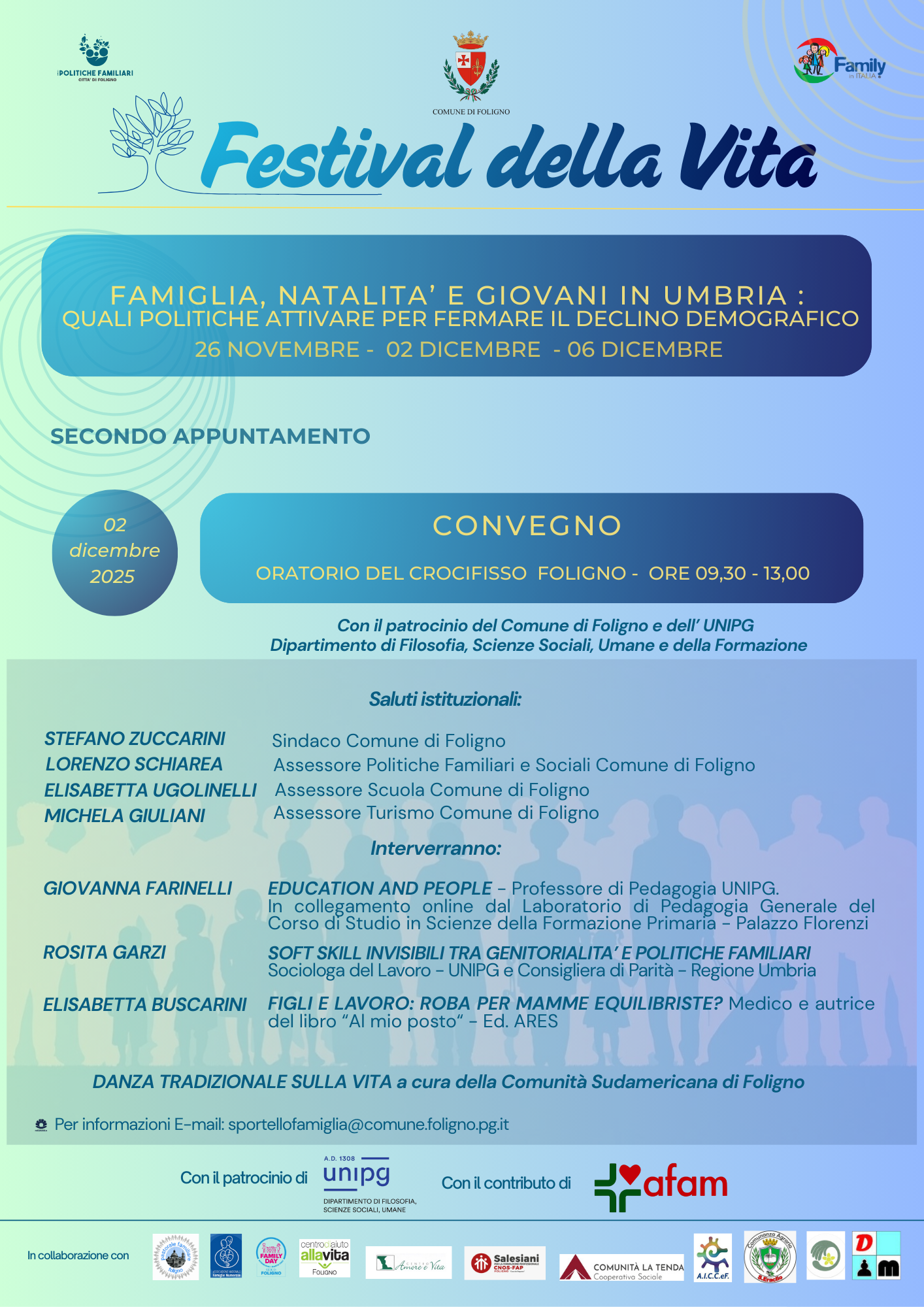 Festival della Vita “Famiglia, natalità e giovani in Umbria: quali politiche attivare per fermare il declino demografico”