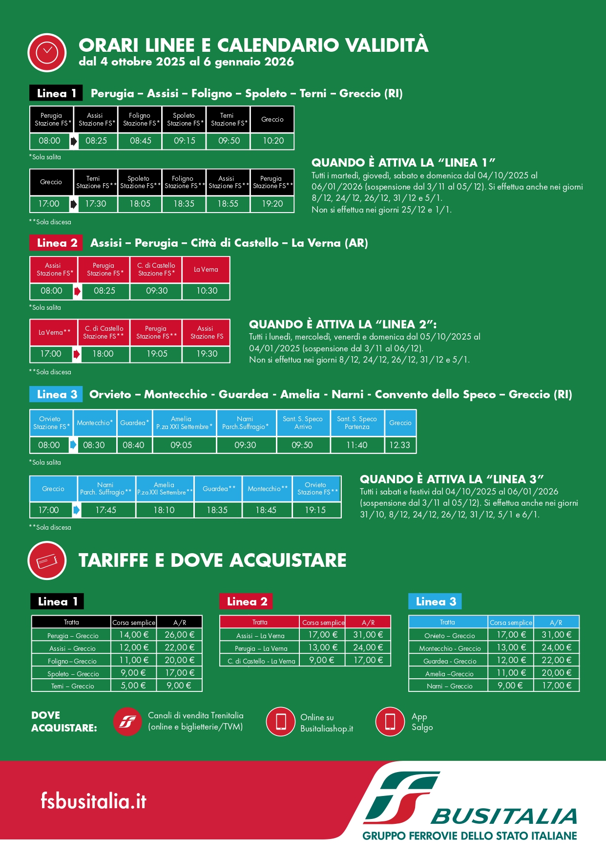 - Linea 3: Orvieto – Montecchio - Guardea - Amelia - Narni - Convento dello Speco – Greccio (RI)