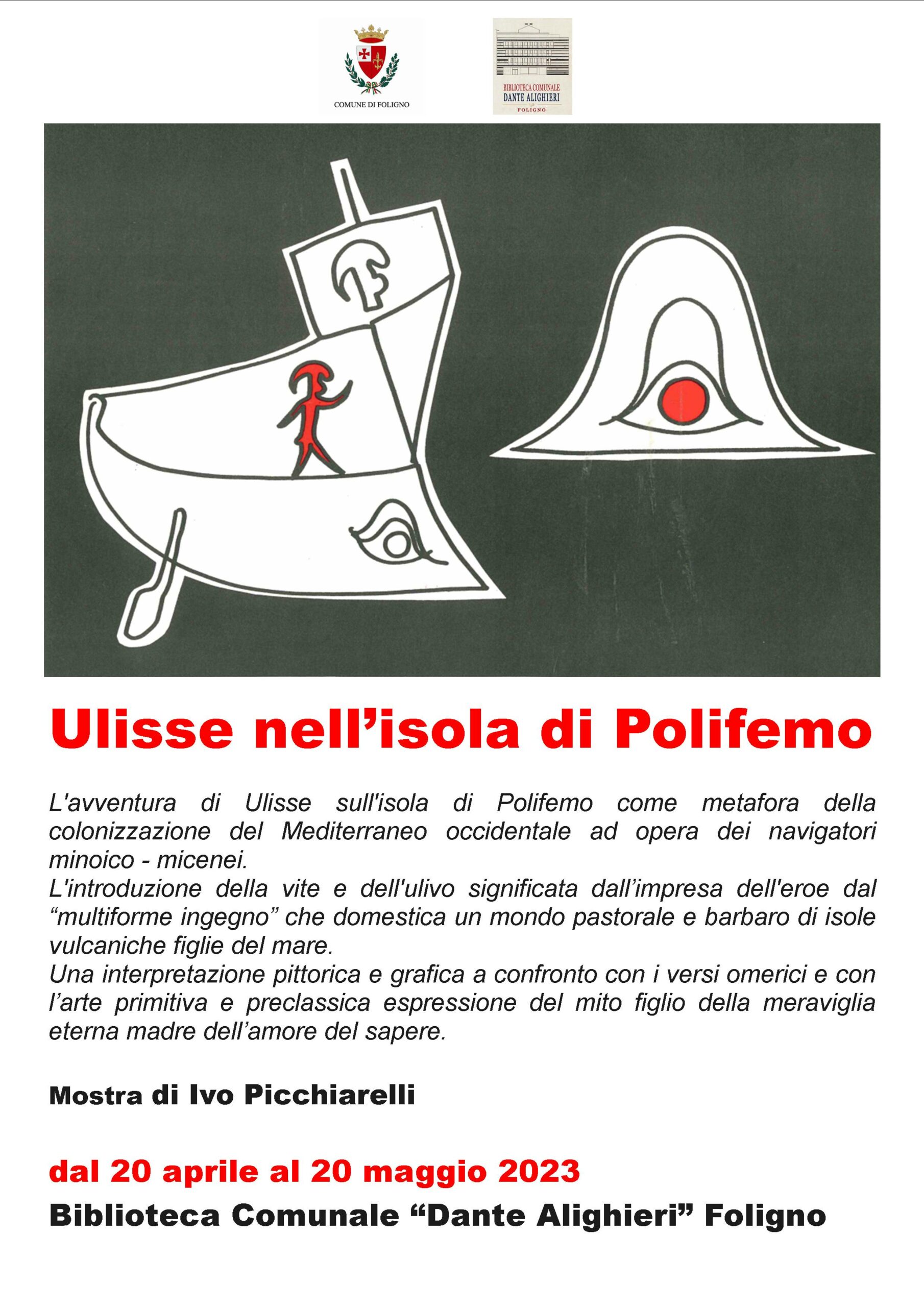 "Ulisse nell'isola di Polifemo" è la mostra allestita al piano terra della Biblioteca centrale in piazza del Grano, con disegni e testi di Ivo Picchiarelli.