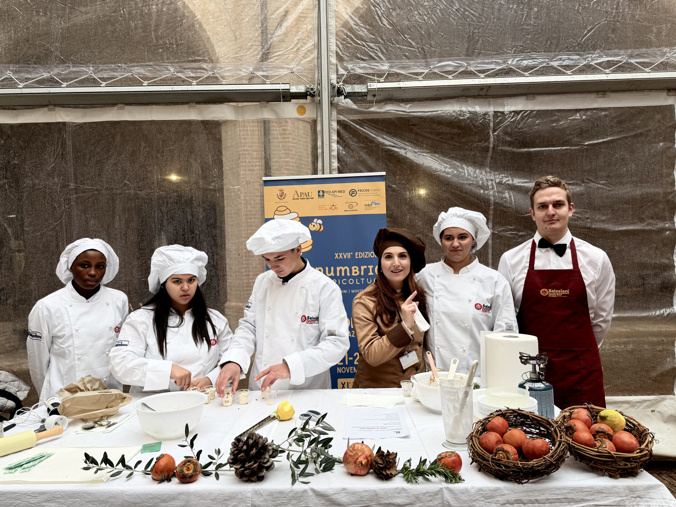 Molto significativa la partecipazione delle giovanissime rappresentanti palestinesi di Gerico, provenienti dalla Cooperativa Al-Awja per lo sviluppo rurale, che hanno portato al Forum la testimonianza di una tradizione apistica antica e resiliente, radicata in quella che storicamente è conosciuta come “la terra del latte e del miele”. Le loro parole hanno intrecciato suolo, identità e resistenza, evidenziando il ruolo delle giovani generazioni nella salvaguardia dei saperi rurali e nella ricostruzione dei territori. E poi dolcezza, eleganza e cura si sono intrecciate nel lavoro delle studentesse e degli studenti della Casa del Ragazzo, CNOS FAP di Foligno, rendendo la giornata un punto di incontro tra educazione, sostenibilità e tradizione gastronomica.