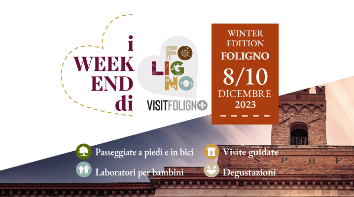 In occasione del ponte dell’Immacolata, dall’8 al 10 dicembre 2023, il Comune di Foligno promuove un’edizione invernale de I WEEKEND di VisitFoligno: una nuova occasione per scoprire la città umbra e il suo territorio attraverso la natura, l’arte, lo sport all’aria aperta, la tradizione e l’enogastronomia. Una ricca offerta di itinerari ed esperienze, rivolte sia agli adulti che ai più piccoli, vi farà immergere nelle atmosfere più autentiche e suggestive di Foligno. Non sarà solo il tessuto urbano, con i palazzi storici, i musei e le chiese, ad essere protagonista dei percorsi di visita, ma anche l’affascinante territorio circostante, che trae la propria attrattività dalla varietà di paesaggi.