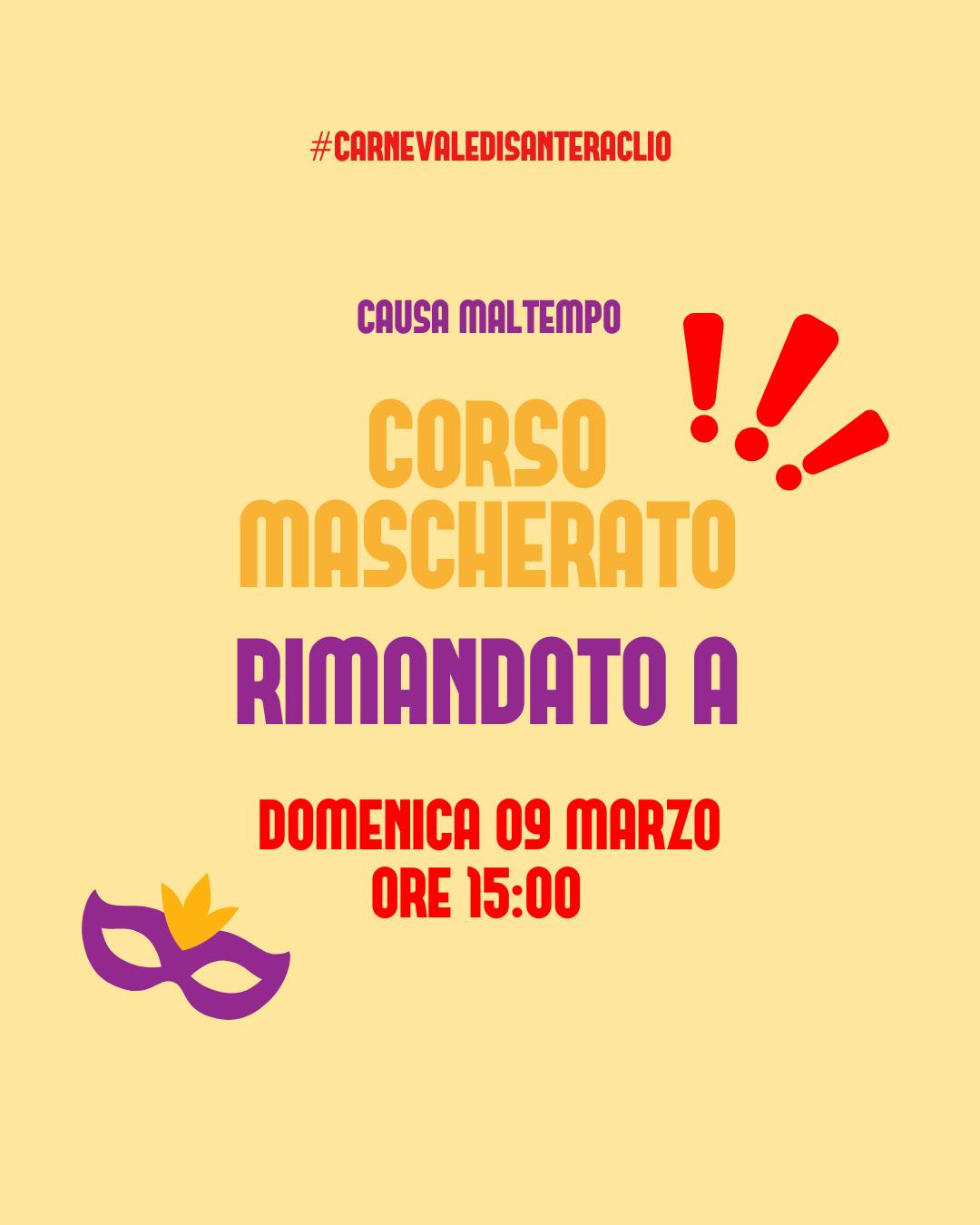 62 edizione. Causa maltempo il corso mascherato è rimandato a domenica prossima.