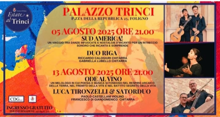 Cos'è Concerto dedicato alla musica sudamericana a cura dell’associazione culturale CDG-Next. https://www.comune.foligno.pg.it/estate-al-trinci-2025/