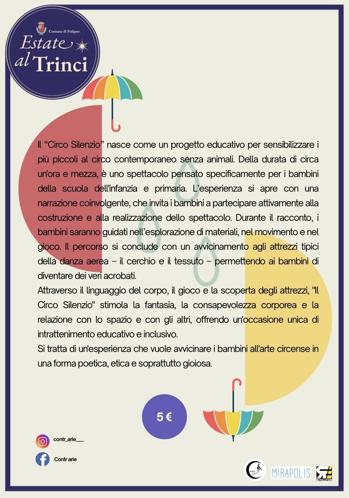 Cos'è Spettacolo interattivo per bambini e famiglie a cura dell’Associazione Culturale Mirapolis APS e gruppo Contr-arie ingresso a pagamento https://www.comune.foligno.pg.it/estate-al-trinci-2025/