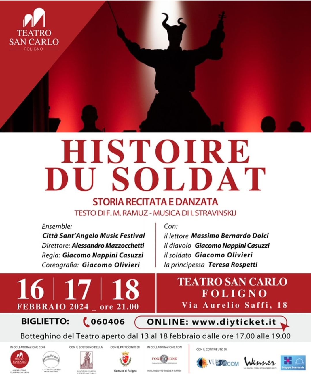 E su queste note, quattro professionisti folignati danzeranno, reciteranno e metteranno in scena la storia del soldato e le vicende che lo porteranno a scontrarsi con il diavolo e a lottare per ciò che è davvero importante.