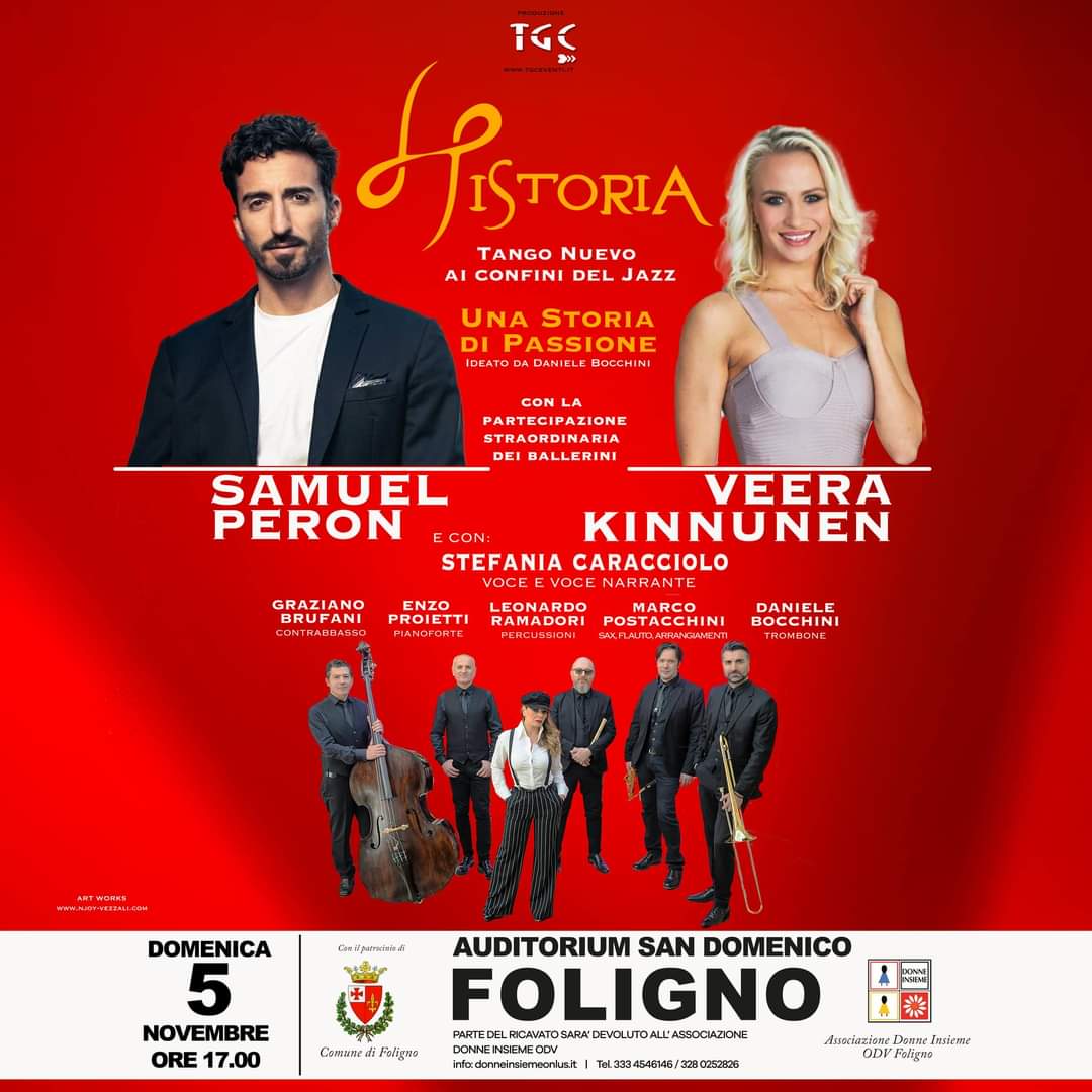 Historia è fusione di poesia, musica e danza. Protagonisti sei musicisti uniti dalla passione per un sound raffinato, la vocalità di una straordinaria interprete e il sentimento travolgente del ballo a due, pensato in una milonga dei nostri tempi. Il repertorio di Historia si ispira all’opera dei due più importanti interpreti di tango del Novecento: Carlos Garde, il leggendario cantante di tango che ha tradotto in musica e ballo i sentimenti e la passione raccontata nei Caffè della Buenos Aires degli anni ’30; e Astor Piazzolla, uno dei più grandi compositori del XX secolo, vero riformatore del tango e strumentista d’avanguardia cui si deve la nascita del Tango Nuevo.