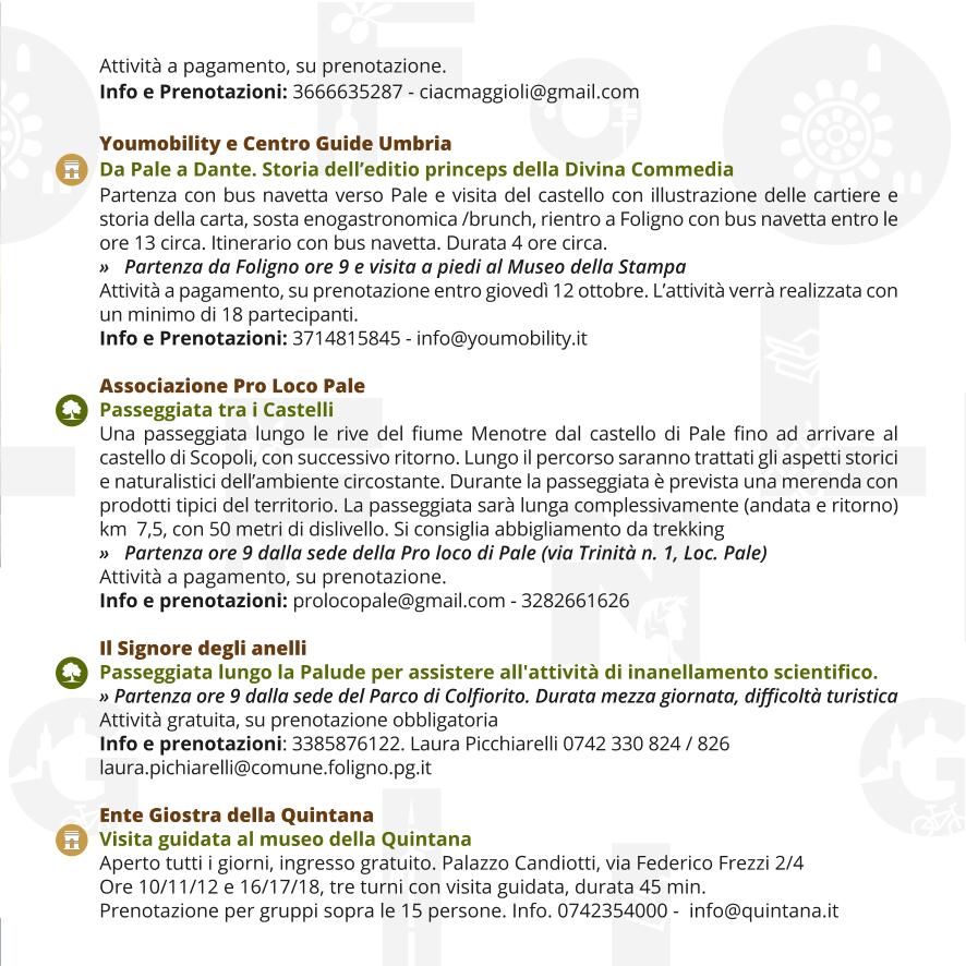 A seguire, partenza con bus navetta verso Pale e visita del castello con illustrazione delle cartiere e storia della carta, sosta enogastronomica /brunch, rientro a Foligno con bus navetta entro le ore 13 circa.