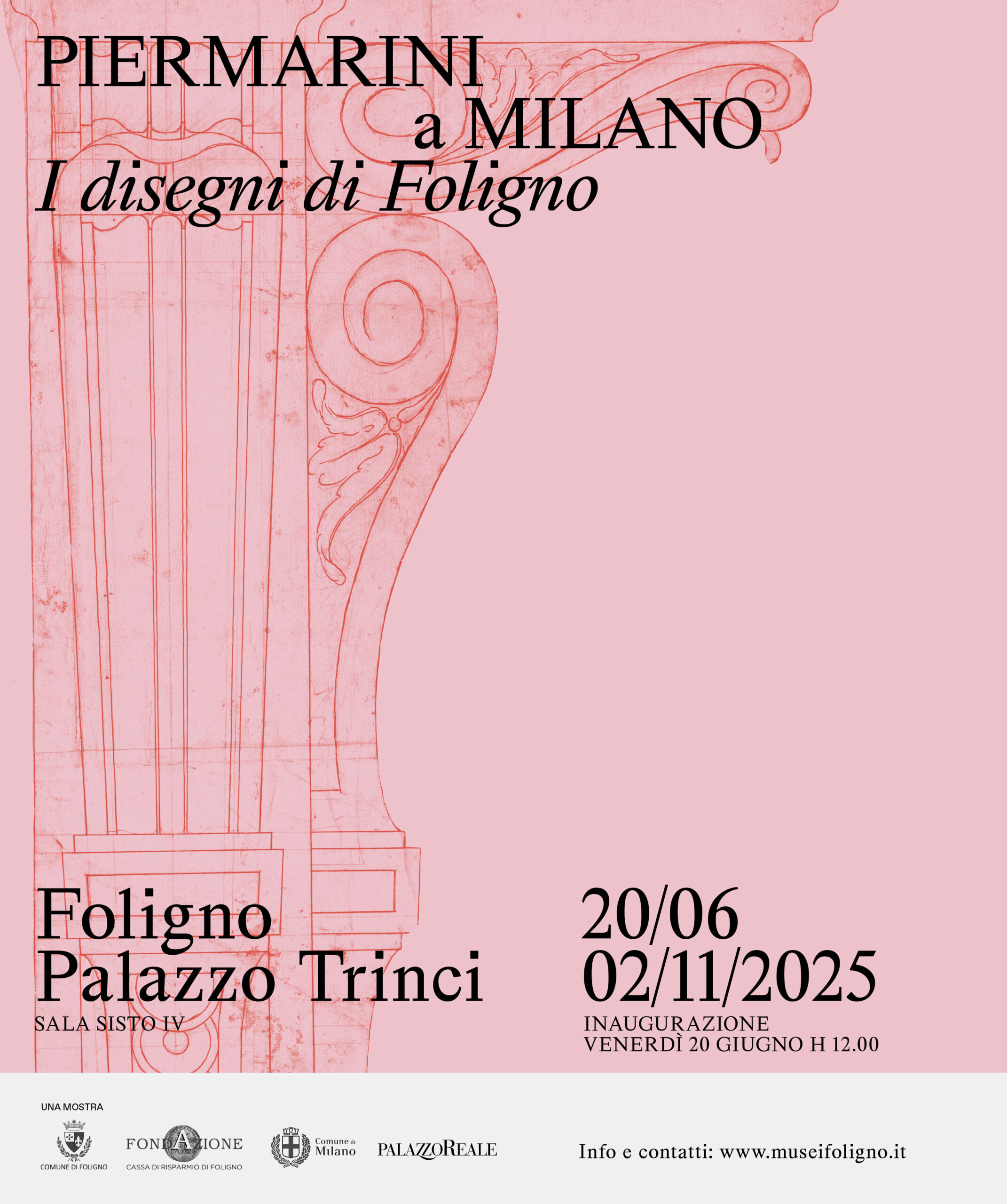 La mostra, che sarà aperta al pubblico fino al 02 novembre 2025, è promossa dal Comune di Foligno, città natale del Piermarini, e dalla Fondazione Cassa di Risparmio di Foligno, insieme al Comune di Milano e al Palazzo Reale.