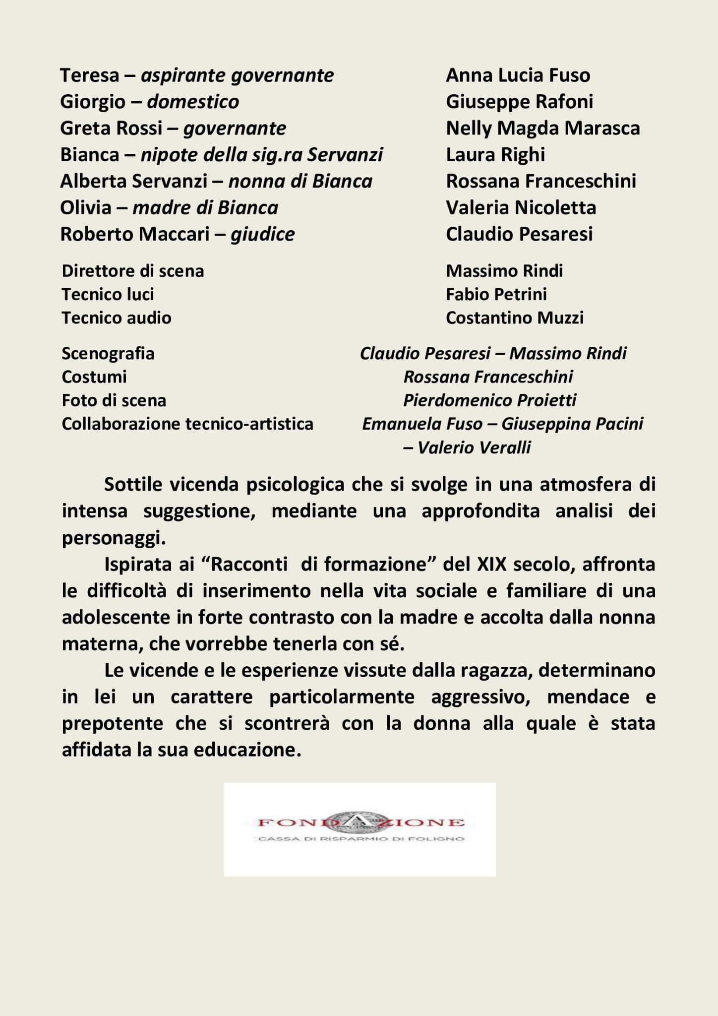 Ispirata ai “Racconti di formazione” del XIX secolo, affronta le difficoltà di inserimento della vita sociale e familiare di una adolescente in forte contrasto con la madre e accolta dalla nonna materna, che vorrebbe tenerla con sè..