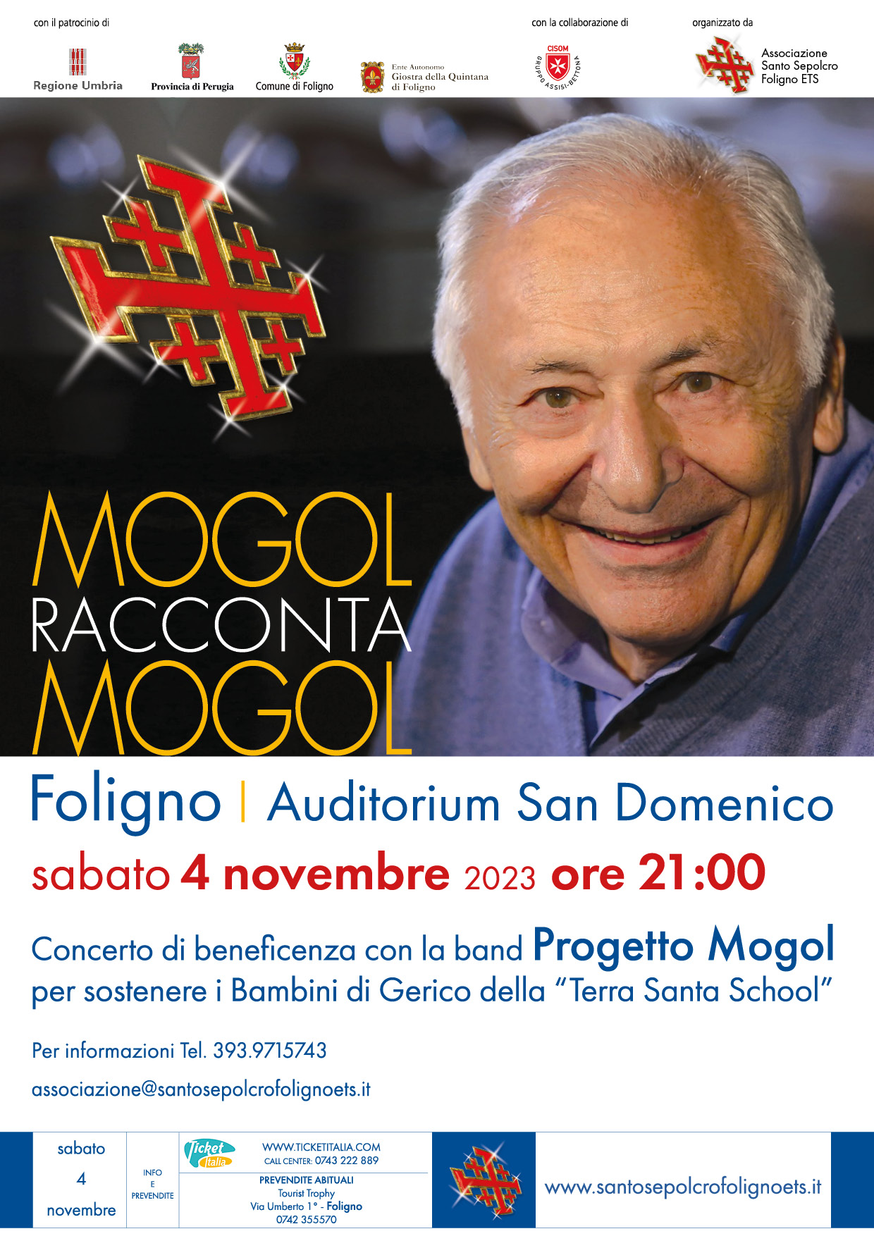 Cos'è Concerto di Beneficenza con la band Progetto Mogol per sostenere i Bambini di Gerico della “Terra Santa School”. Per info: 393/9715743 – associazione@santosepolcrofolignoets.it https://ticketitalia.com/en/mogol-racconta-mogol-1