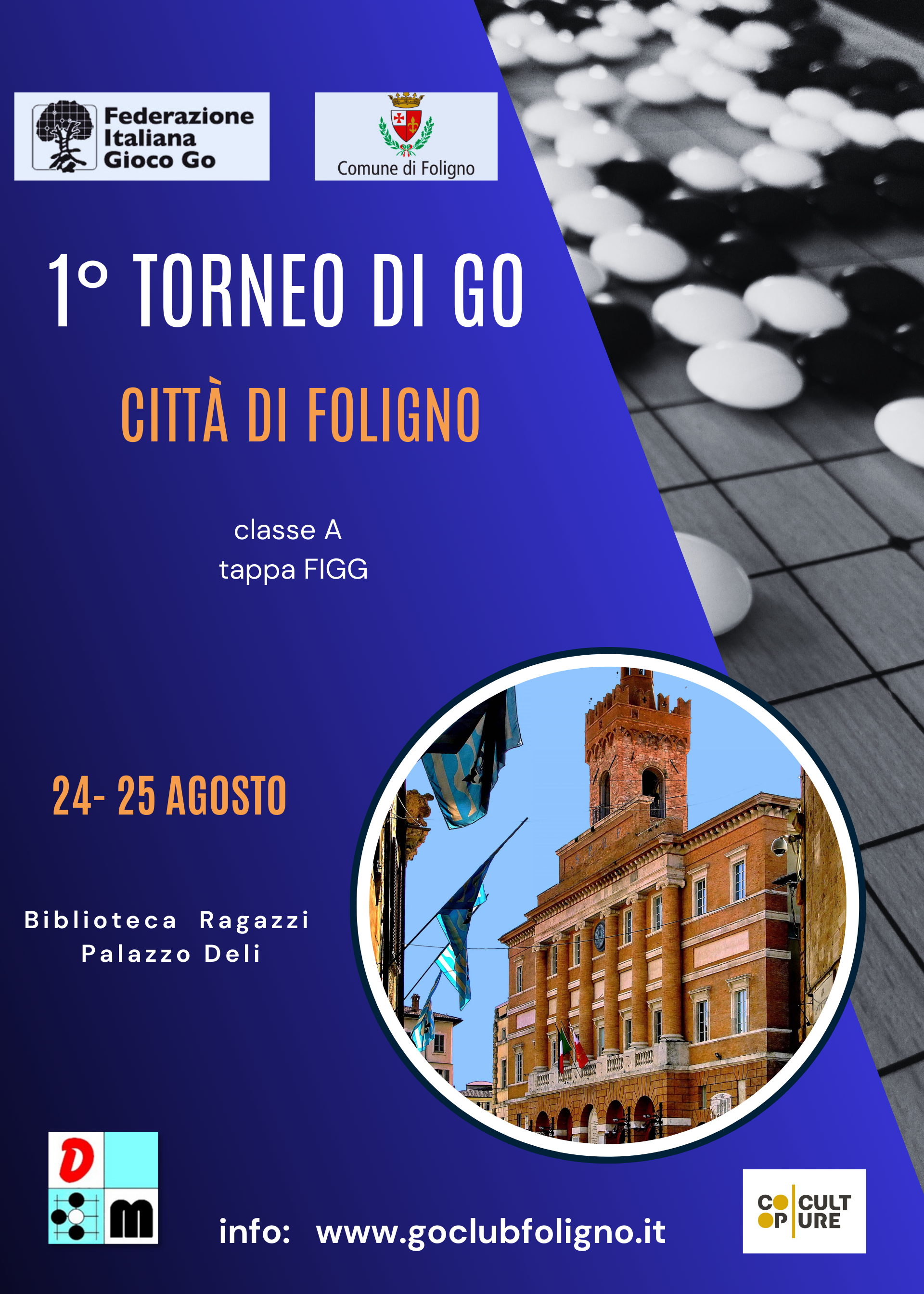 Il 24 e 25 sarà di scena il “1° torneo di Go Città di Foligno” di classe A, internazionale, valido per l’assegnazione dei punti tappa della Federazione Italiana Gioco del Go (FIGG).
